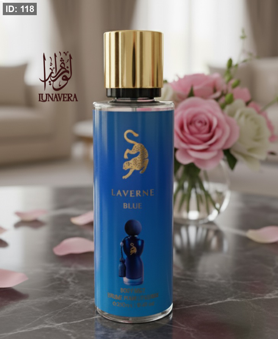 ارتقِ بحضورك إلى مستوى جديد مع رذاذ الجسم LAVERNE BLUE، العطر الذي يجمع بين القوة والجاذبية في كل رشّة.