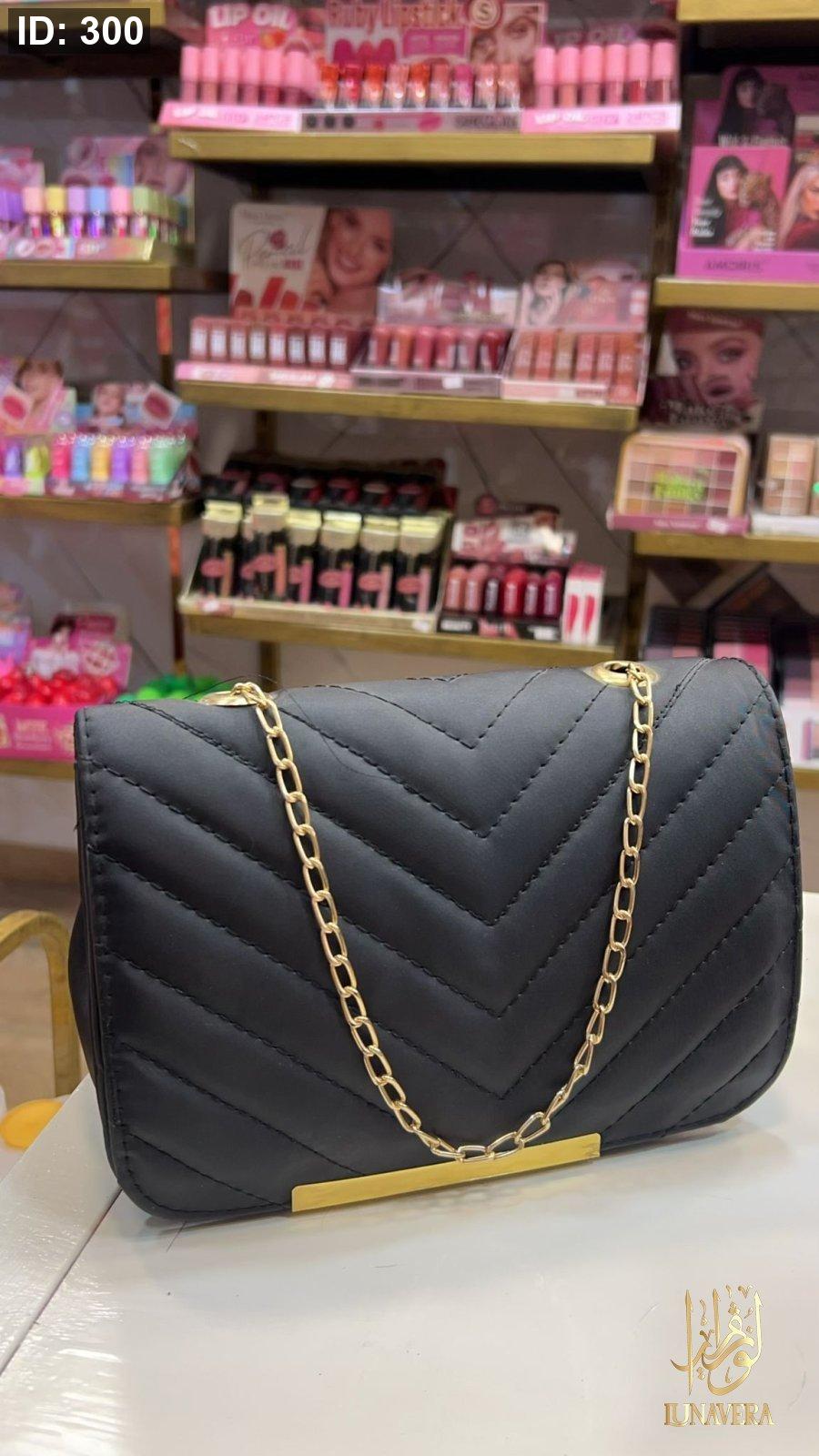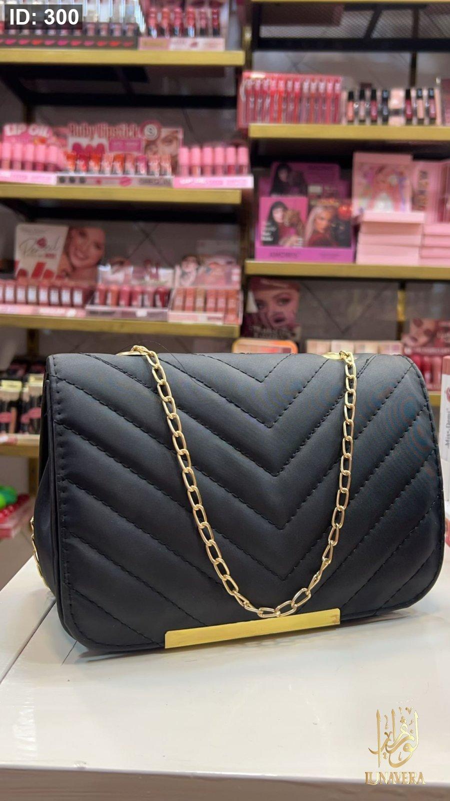 شنطتنا السودة الفاخرة مع السلسال الدهبي مصممة لتكون القطعة اللي ترفع أي لوك… سواء لطلعة مسائية، شغل، أو مناسبة خاصة.
