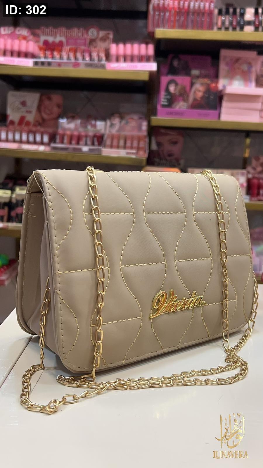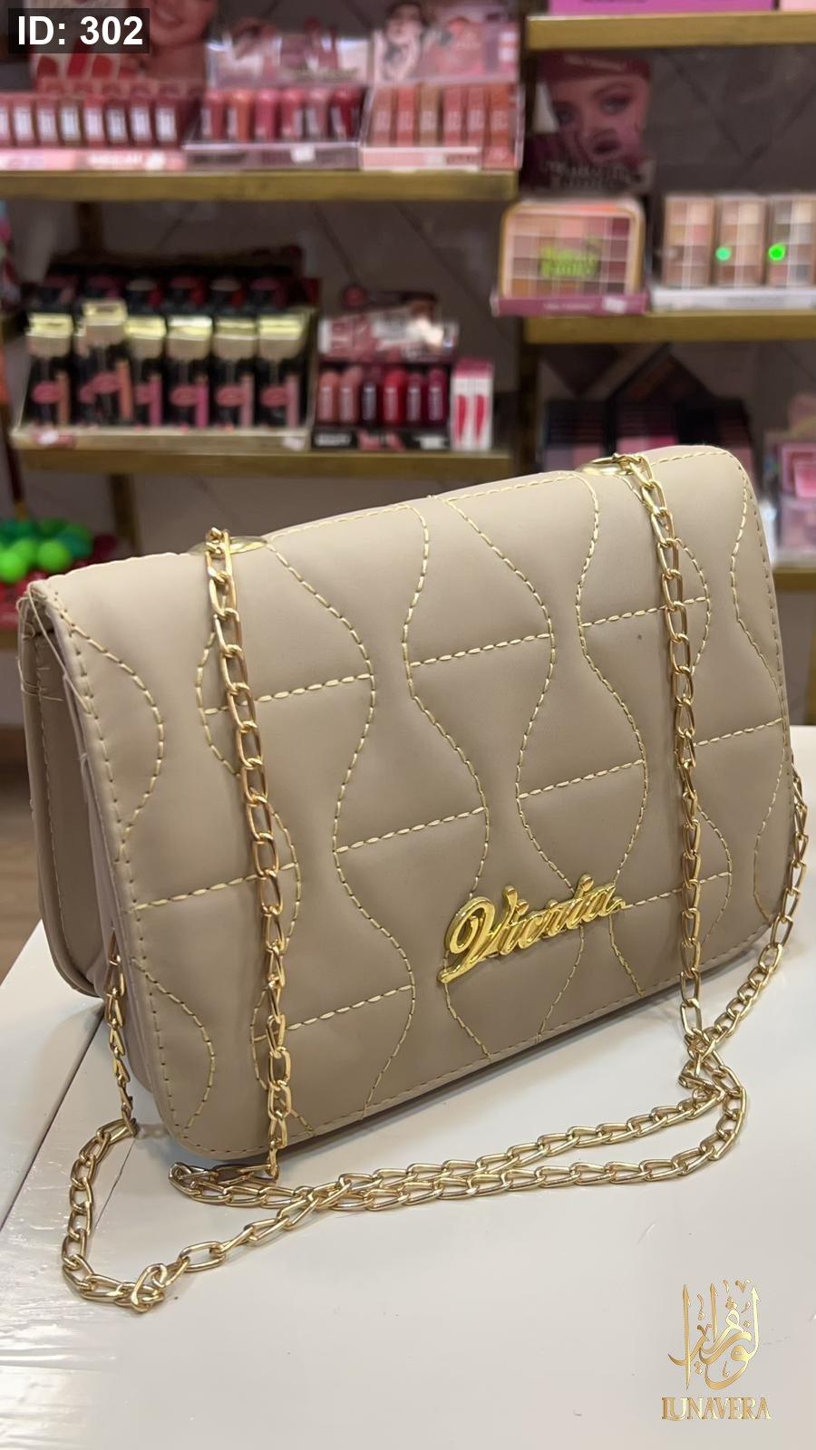 We present to you this luxurious beige bag with its gold chain… an elegant piece that completes any look, from morning outings to evening events.