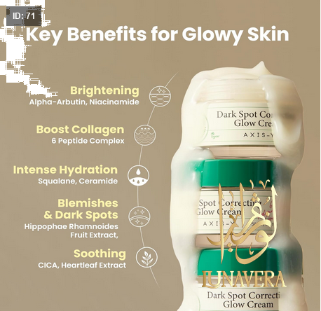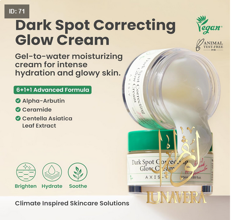 مع Luna Vera Dark Spot Correcting Glow Cream، استعيدي صفاء بشرتك الطبيعي وتألّقي بلمعان صحي لا يُقاوم 💫
