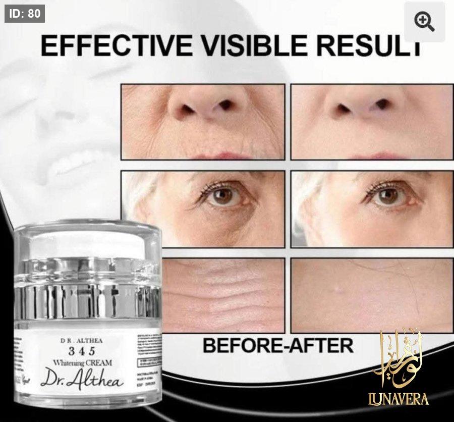 يُعرف الكريم أيضًا باسم "345" لأنه يحتوي على 3 مكونات لعلاج الشوائب، و 4 مكونات مغذية، و 5 مكونات مهدئة.
